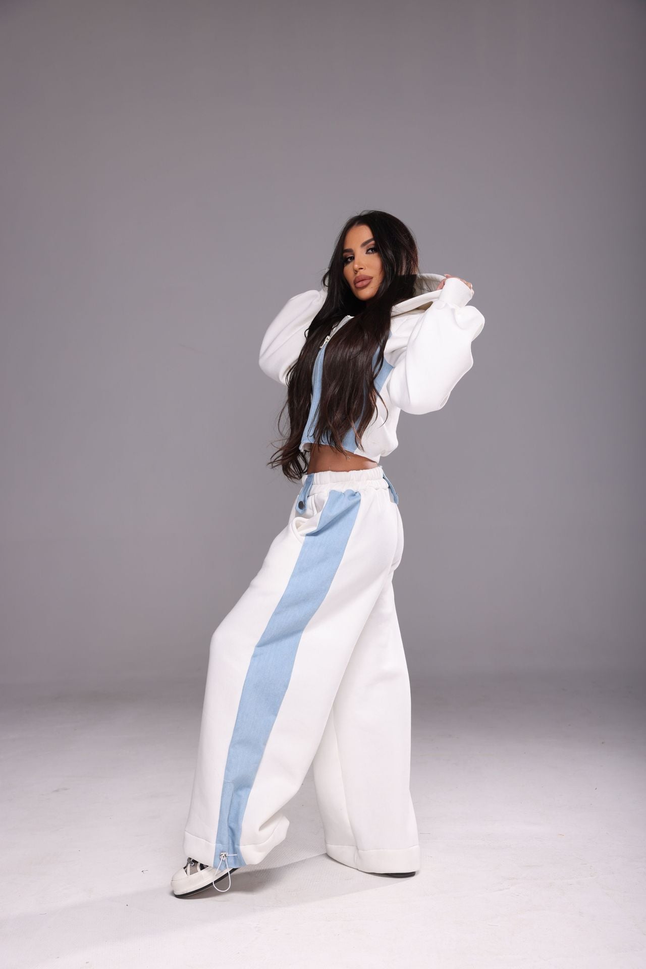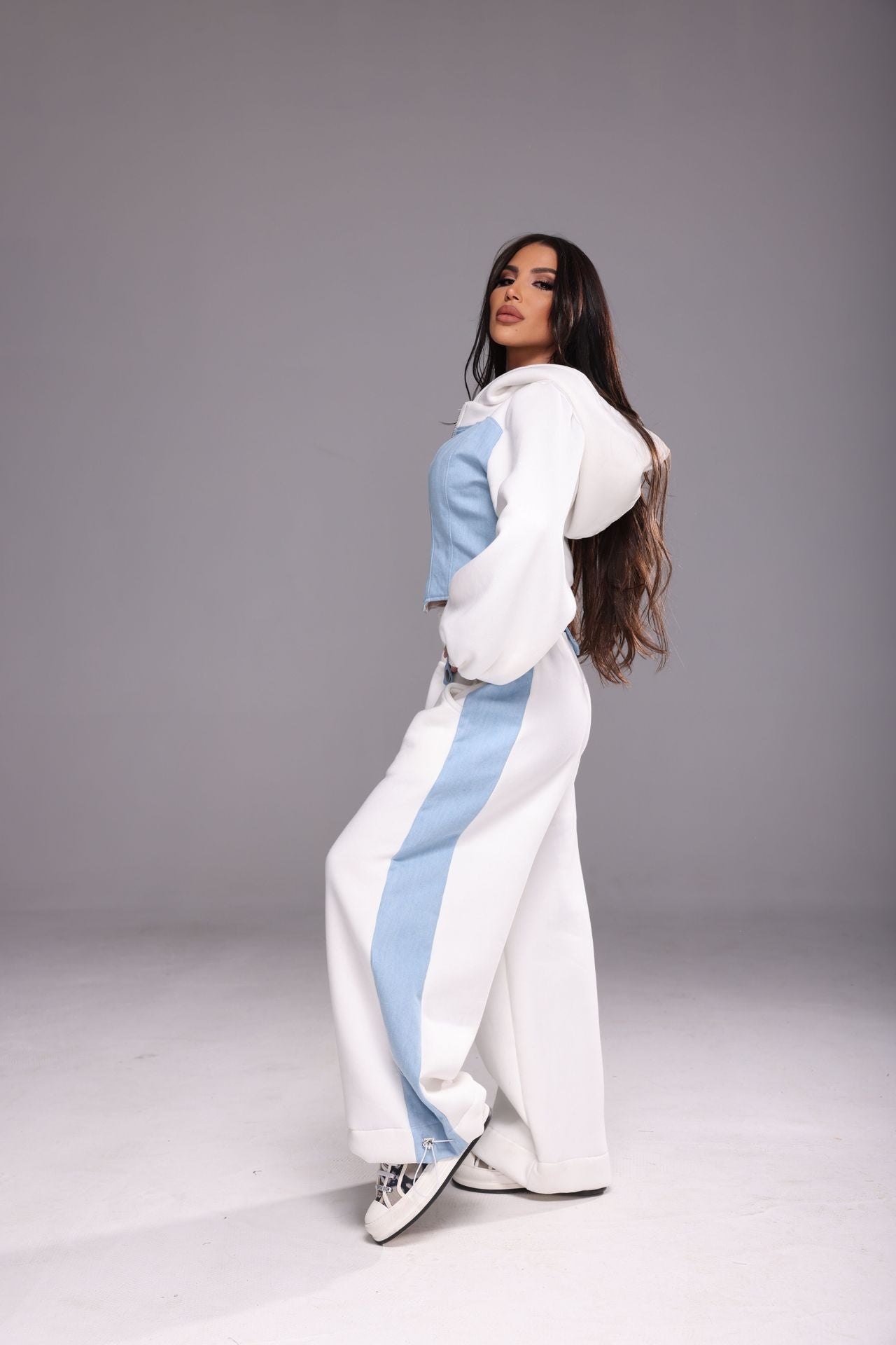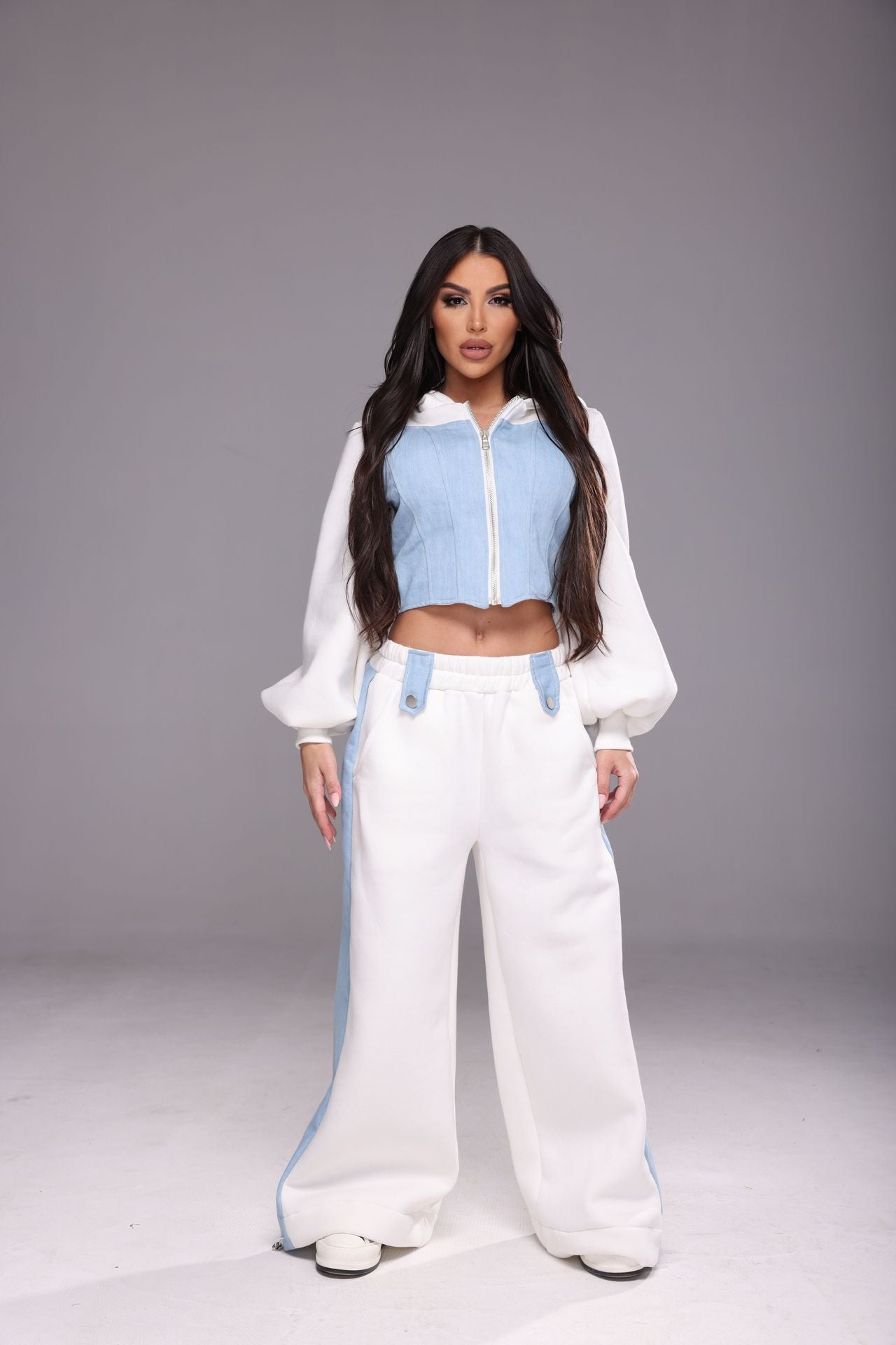 Ватиран панталон с дънков плат. С регулатор в долната част.